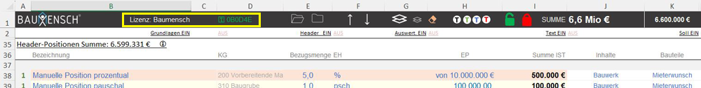 Um einzelne Zellen im Tabellenblatt der Berechnung optisch hervorzuheben, sind Formatierungen möglich – wie man es aus Excel kennt. Per Klick kann man Zeilen in Detailpositionen und im Header einfügen, kopieren oder löschen. Natürlich lassen sich weitere Tabellenblätter in der Datei ergänzen, auf denen man Inhalte einfügen oder Nebenrechnungen erstellen kann.